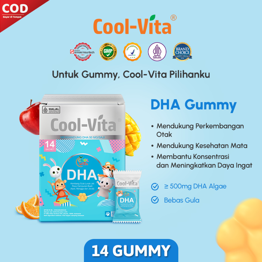 Coolvita 1 Box Dha Gummy Rasa Apel, Mangga, Dan Jeruk | Untuk Si Kecil Yang Aktif | Suplemen Kesehatan Otak [Terlaris]