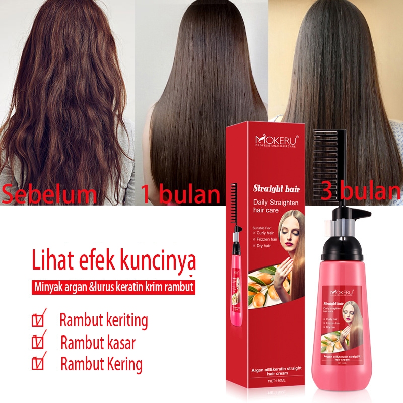 Krim Pelurus Rambut Tanpa Catok 150Ml Lurus Permanen Rambut Smoothing Frizz Sisir Pelurus Rambut