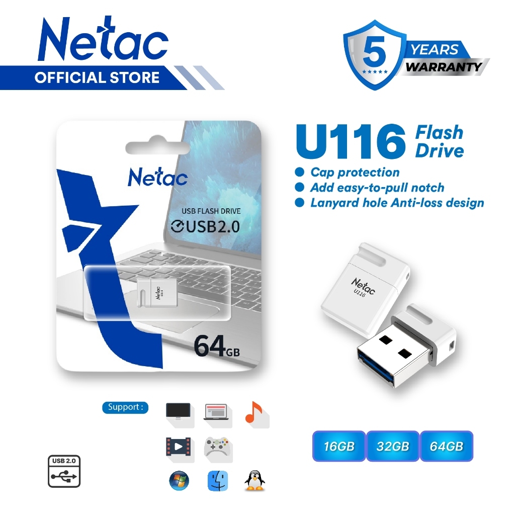 Netac Flashdisk U116 / UM81 USB 3.2 / USB 2.0 Flash Drive 8GB/16GB/32GB/64GB/128GB Ultra compact Flash Disk Jump Drive S
