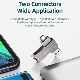 USAMS Flashdisk OTG Dual Drive USB3.0 + Type C 16GB 32GB 64GB 128GB 256GB Rotatable High Speed