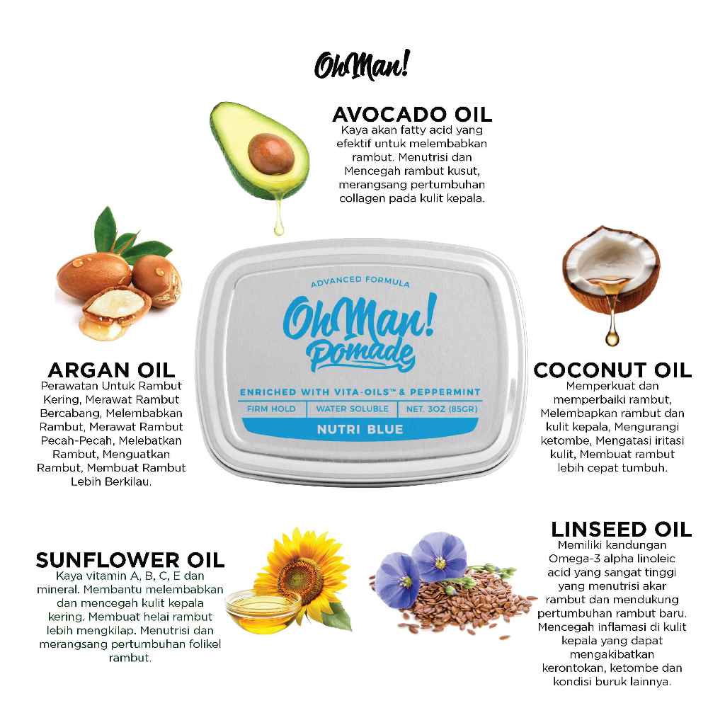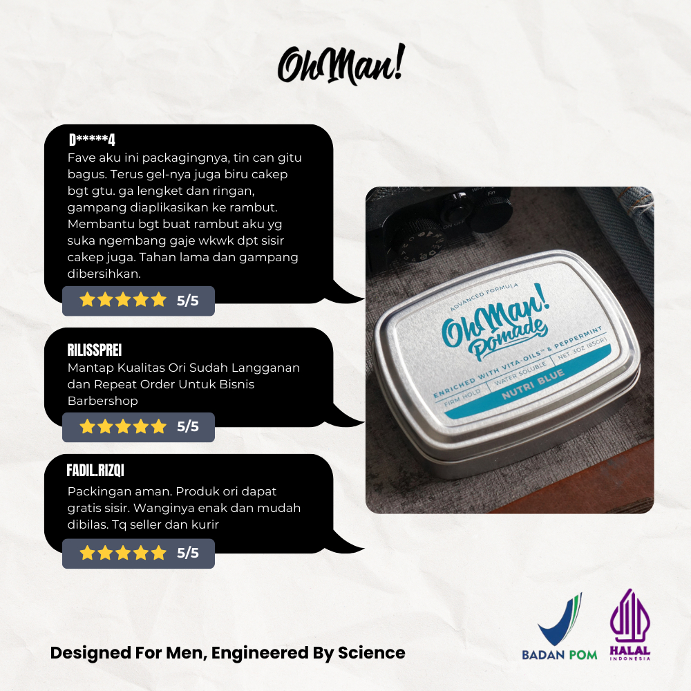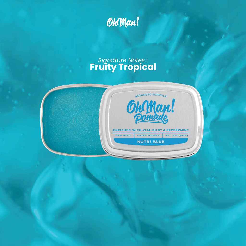 Ohman Pomade Waterbased Nutri Blue 85Gr – Strong Hold, Mudah Dibilas & Wangi Maskulin | Pomade Styling Rambut Pria Haria