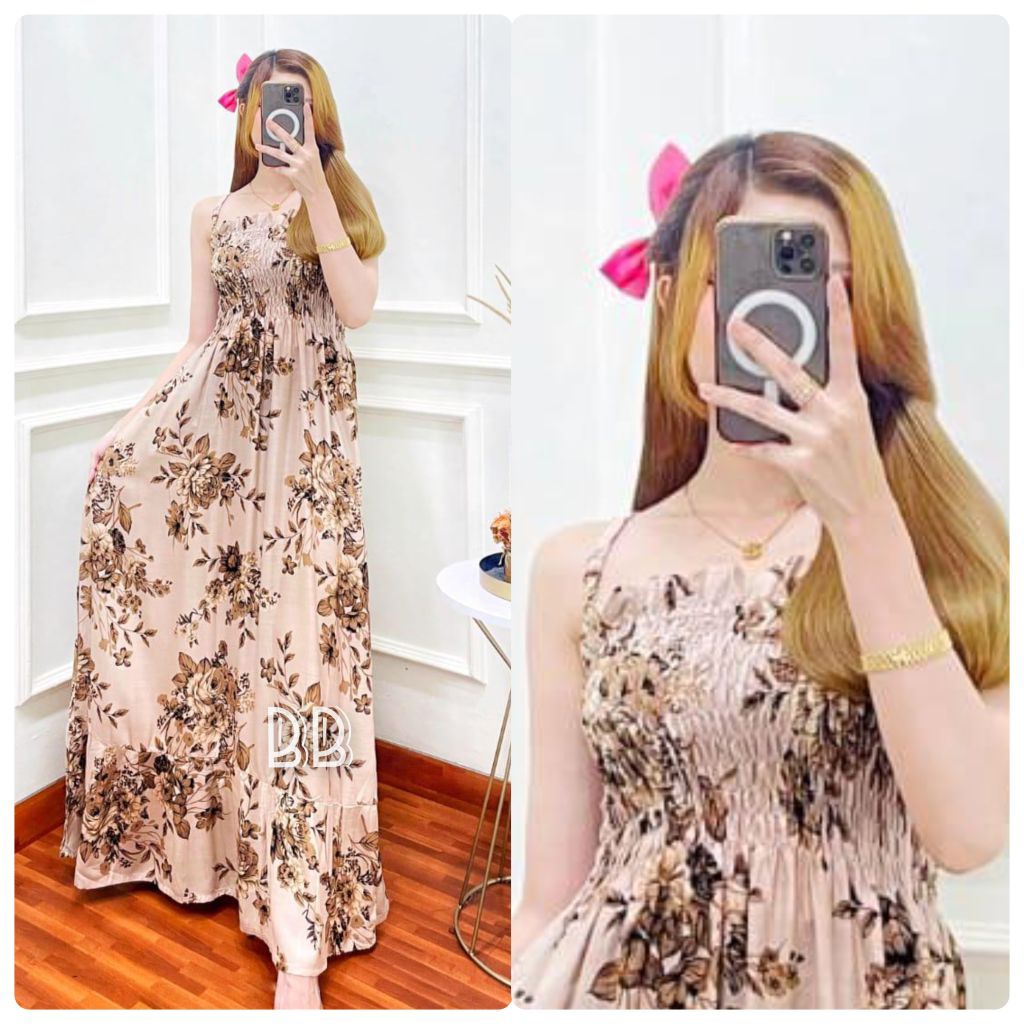 Korean Dress Rayon Motif Grade A/Dress Wanita Kekinian/Dress Kerut Tali Gasper/Inner Dress