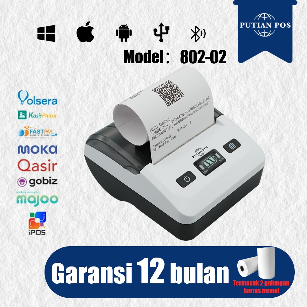 Putian Pos Printer Termal Mini Portabel 80Mm Putian802 2 In 1, Printer Label Struk Stiker
