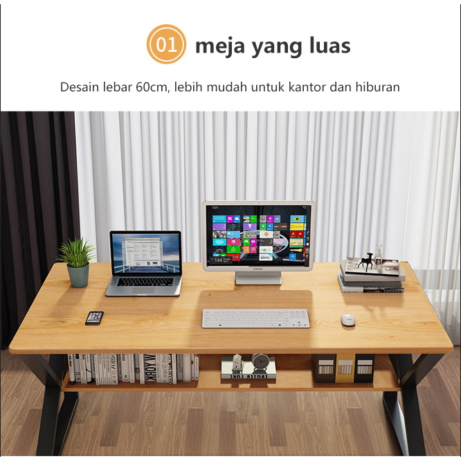 Hometime Meja Gaming Minimalis Meja Belajar Meja Komputer Meja Belajar Meja Kerja Meja Panjang Hitam 120Cm
