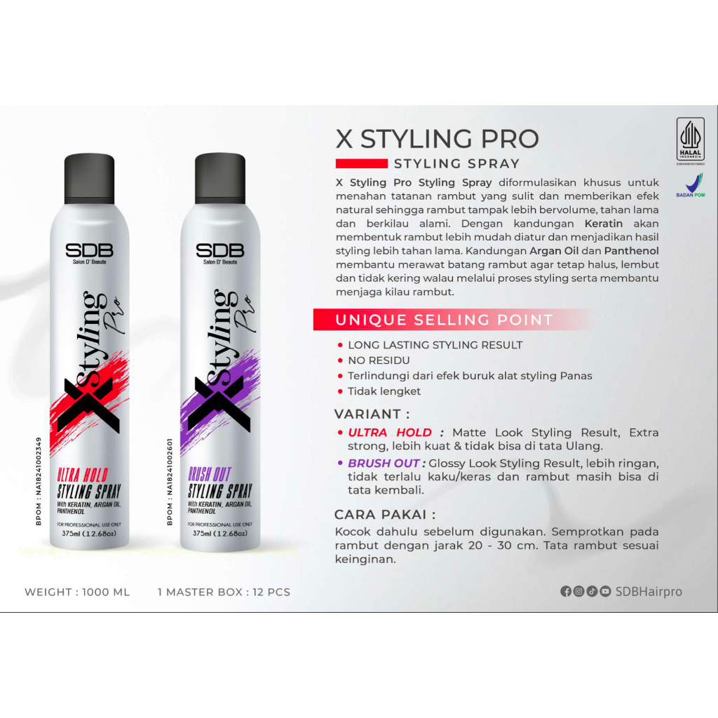 Sdb X Styling Pro - Hair Spray 375Ml | Long Lasting | Tidak Lengket | Rambut Terlindungi