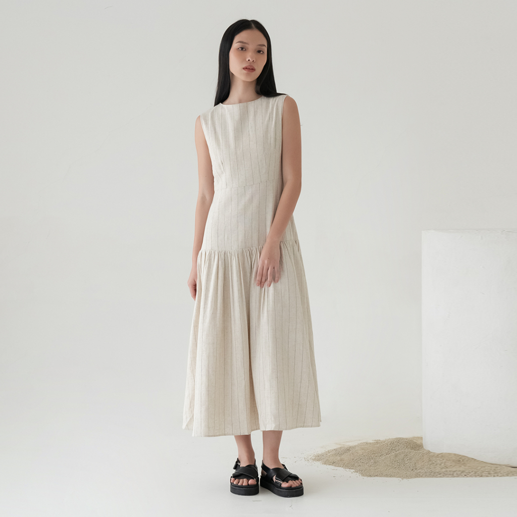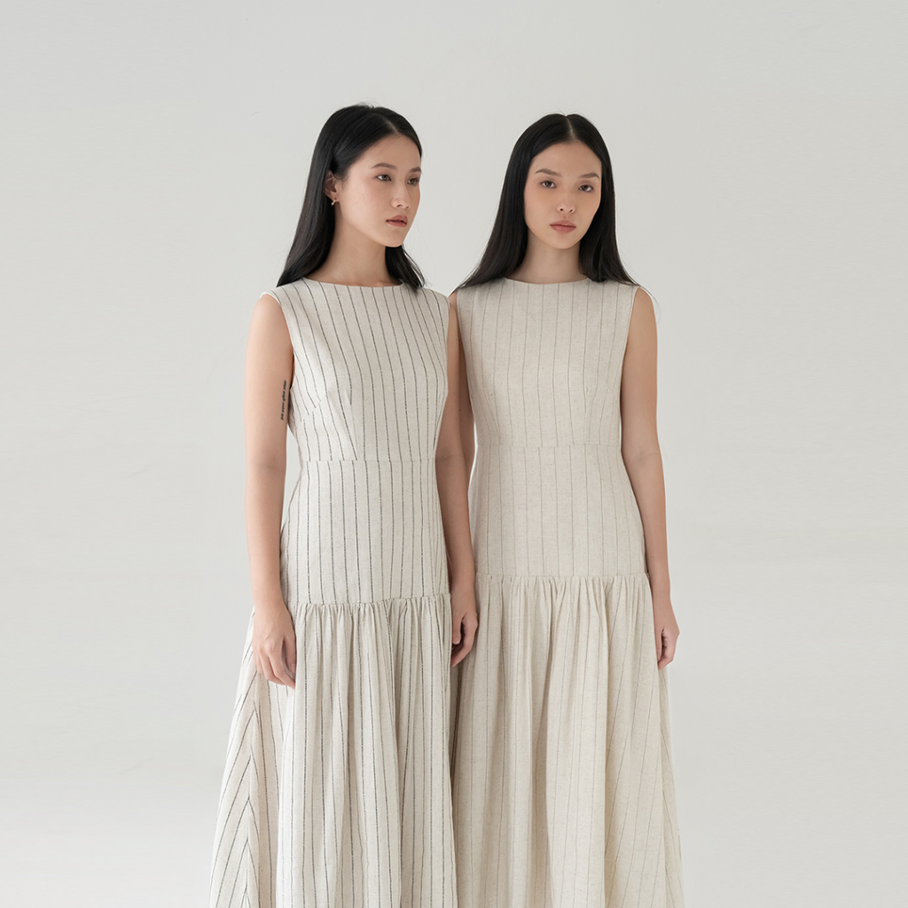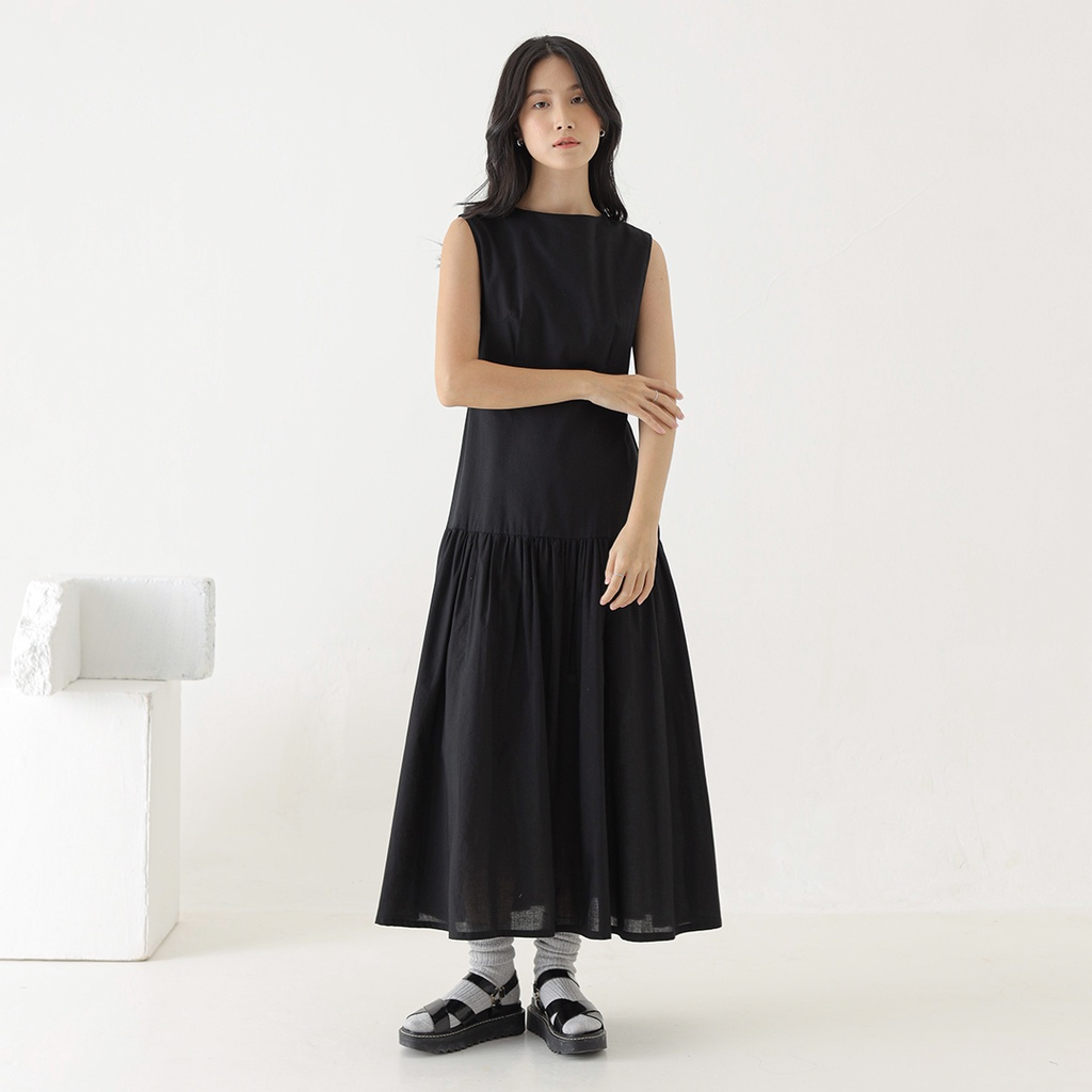 Inkano Spire Dress - Sleeveless Dress Korea Wanita Katun Warna Coklat Dan Hitam Black