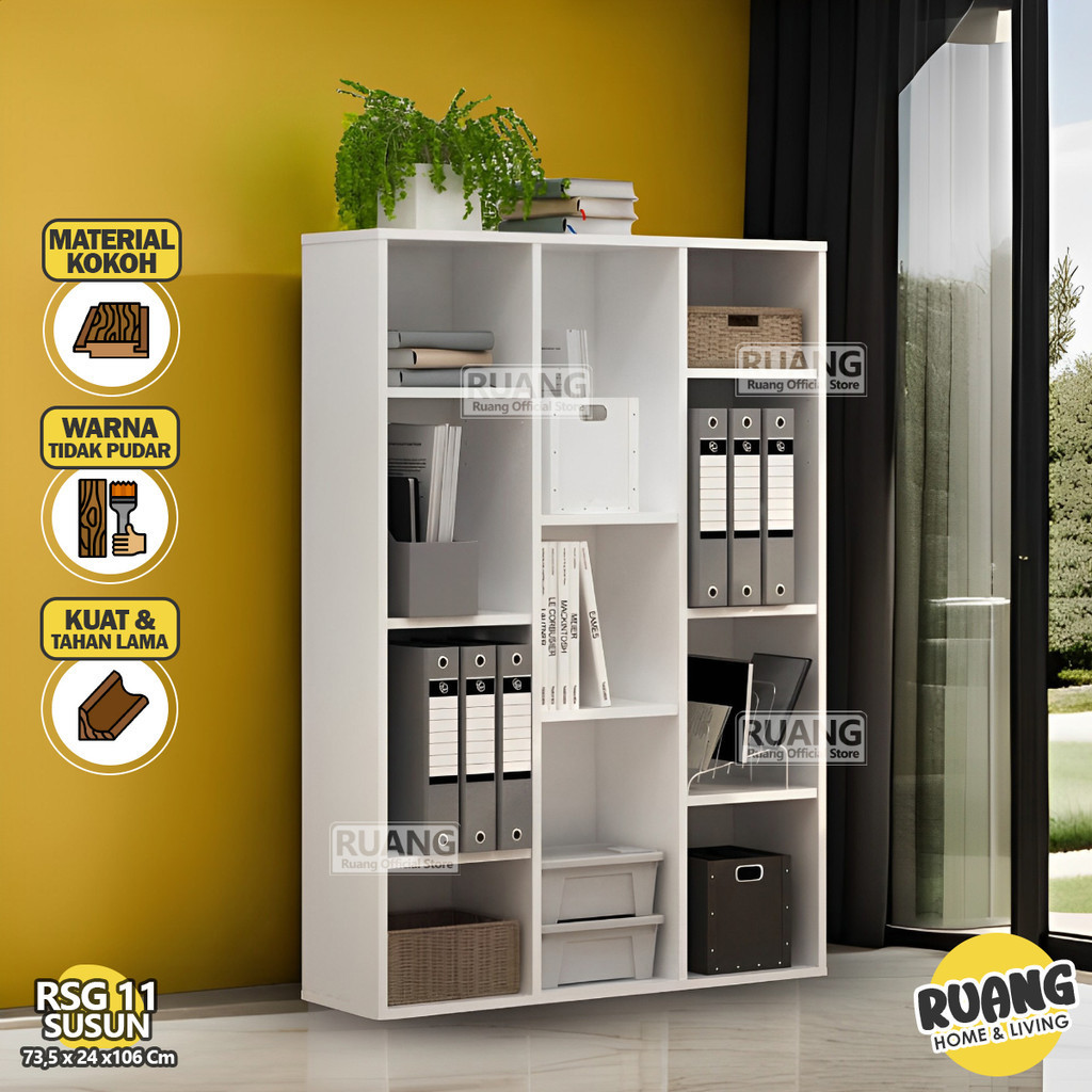 Rak Buku Lemari Book Rack Rak Serbaguba 11 Susun Kayu Murah Lemari Buku