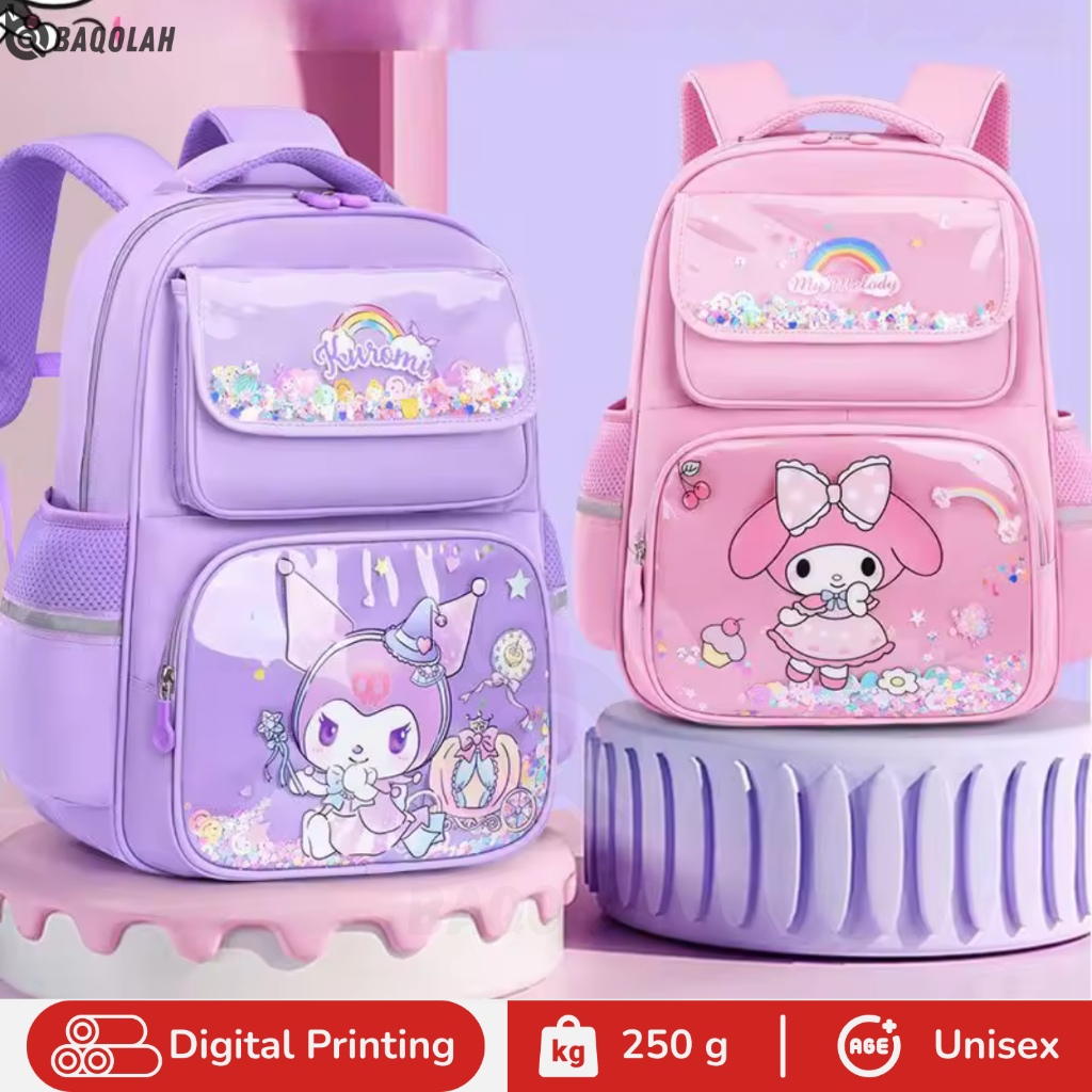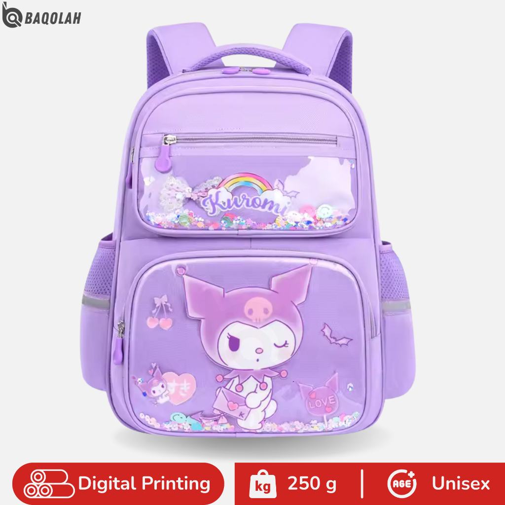 BAQOLAH Tas Ransel Anak Kuromi All Rainbow R057BQ Warna Ungu Large Capacity