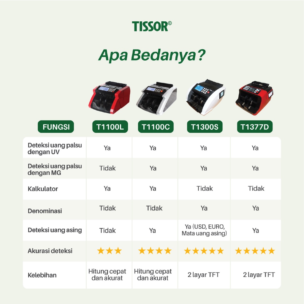 Tissor - T1100C Money Counter - Mesin Hitung Uang