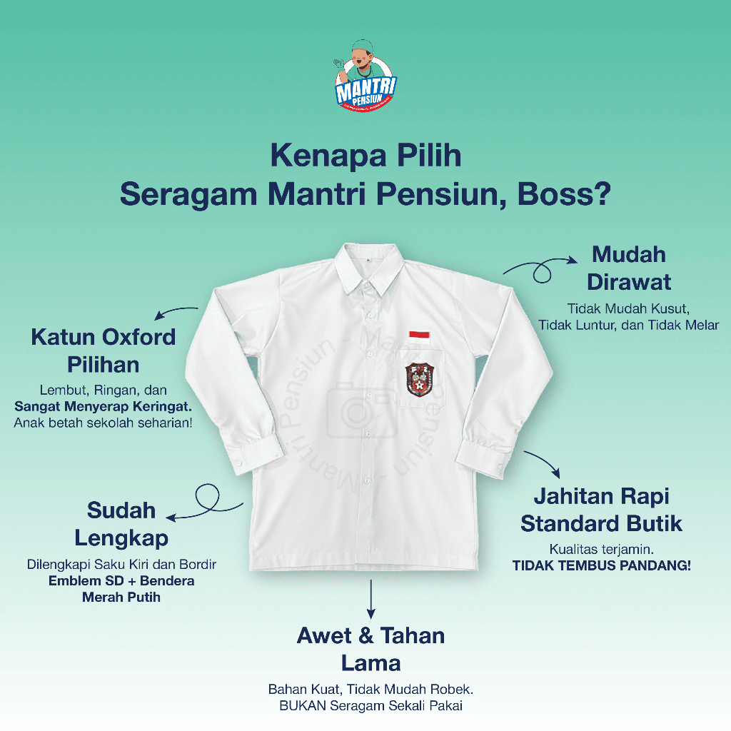 Seragam Sekolah Lengan Panjang Bed Bordir - Seragam Putih Polos SD - SMP - SMA / SMK Bahan Katun Oxford