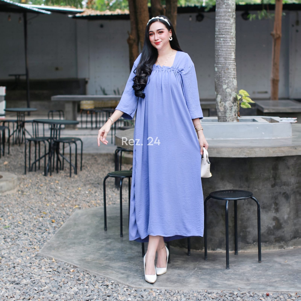Daster Fuji Long Crinkle Airflow Ld 112 / Longdress Fuji Crinkle Premium / Dress Panjang Wanita Kekinian