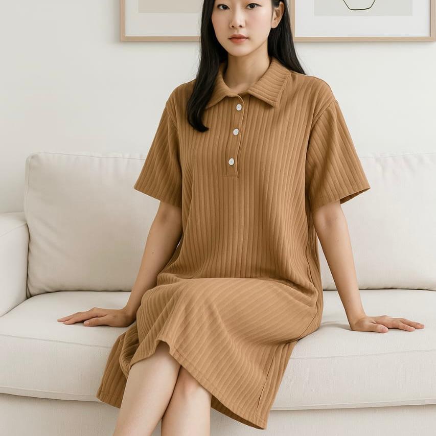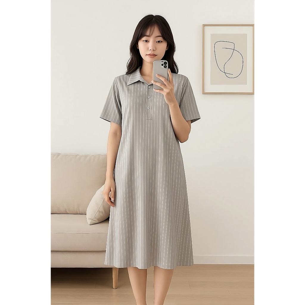 Erica Dress - Dress Pendek Model Polo Kancing Bahan Hornet Melar Lengan Pendek Ghs