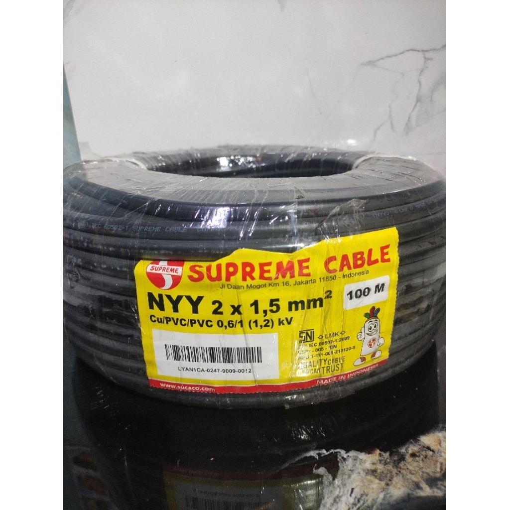 Kabel NYY 2 x 1,5mm SUPREME KABEL 2 x 1,5mm Hitam 100meter
