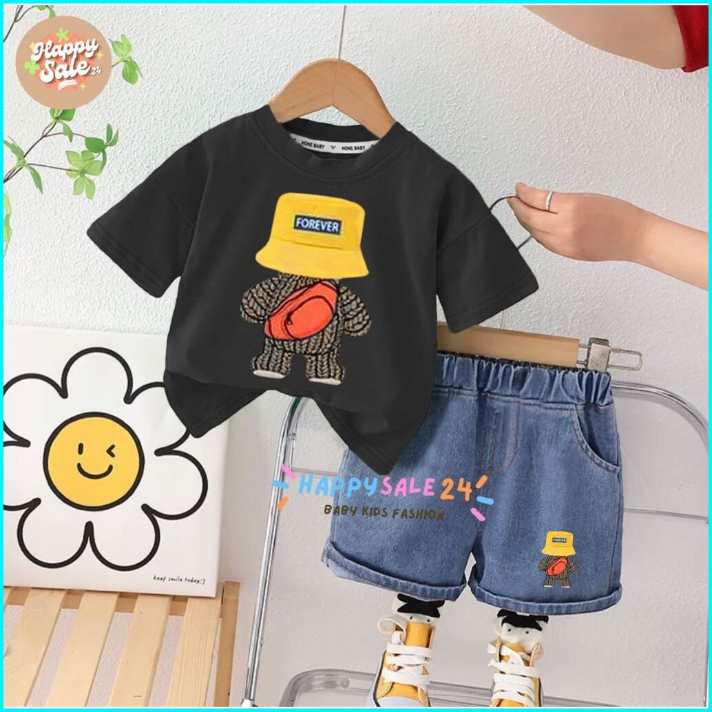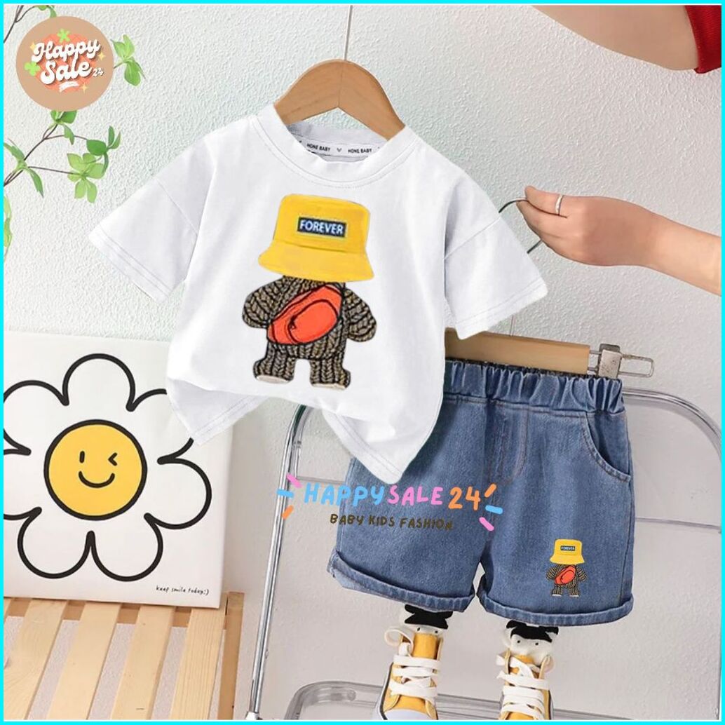 Setelan Anak Laki Laki Kaos Kartun Modis Celana Jeans Pendek Kekinian Usia 1-5 Tahun