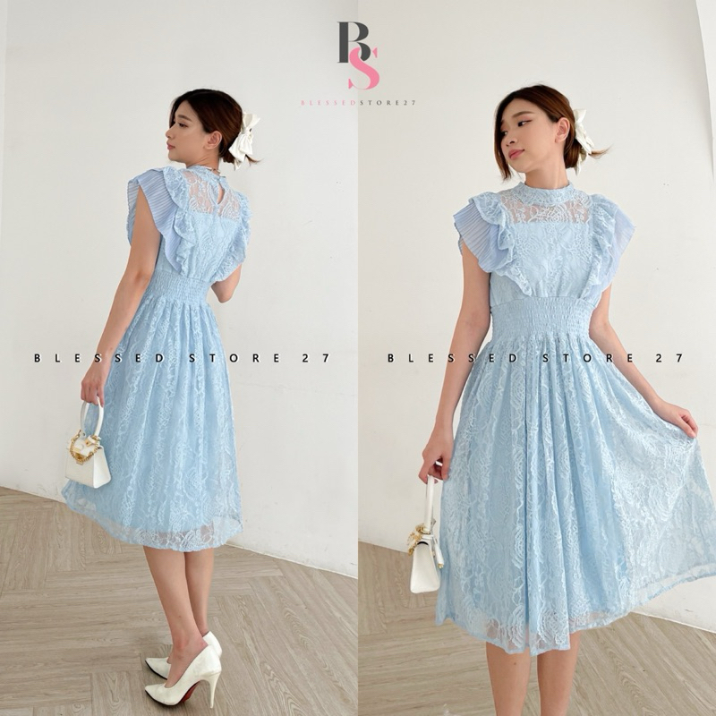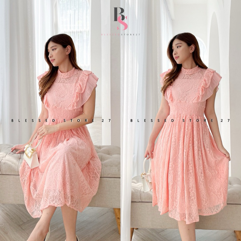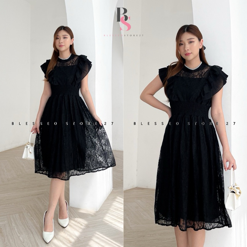 D1269 Jenita Korean Style Brocade Lace Vintage Midi Dress Pesta Premium Simple Elegant Natal Bumil