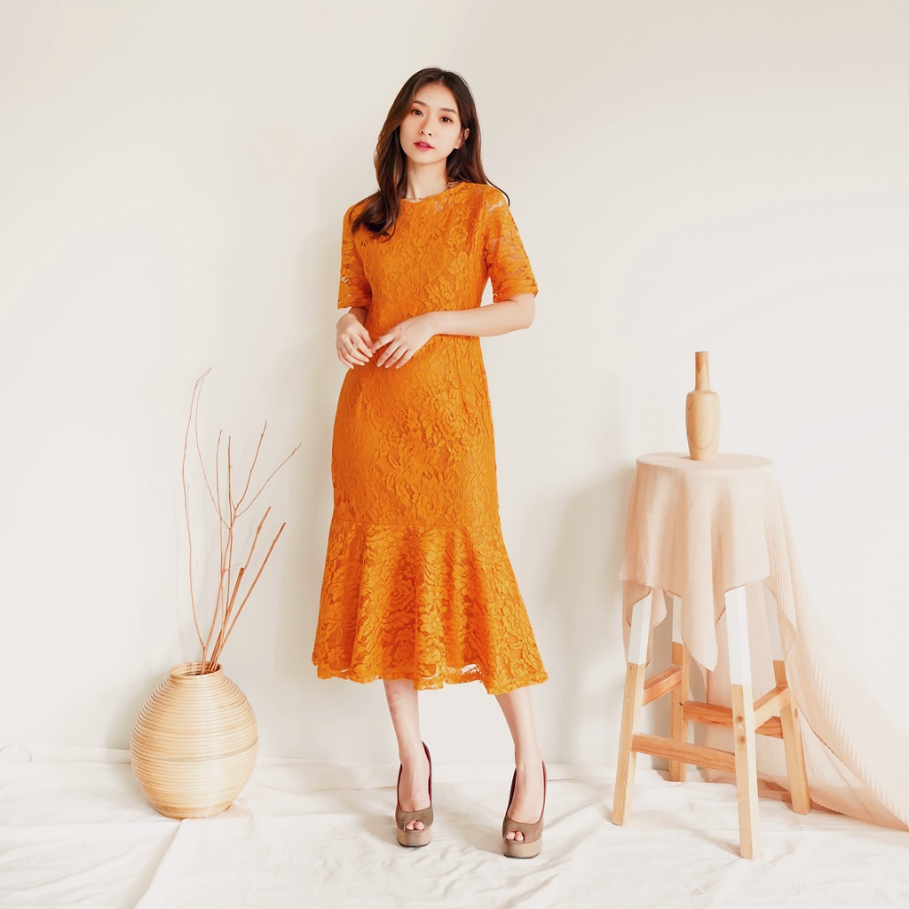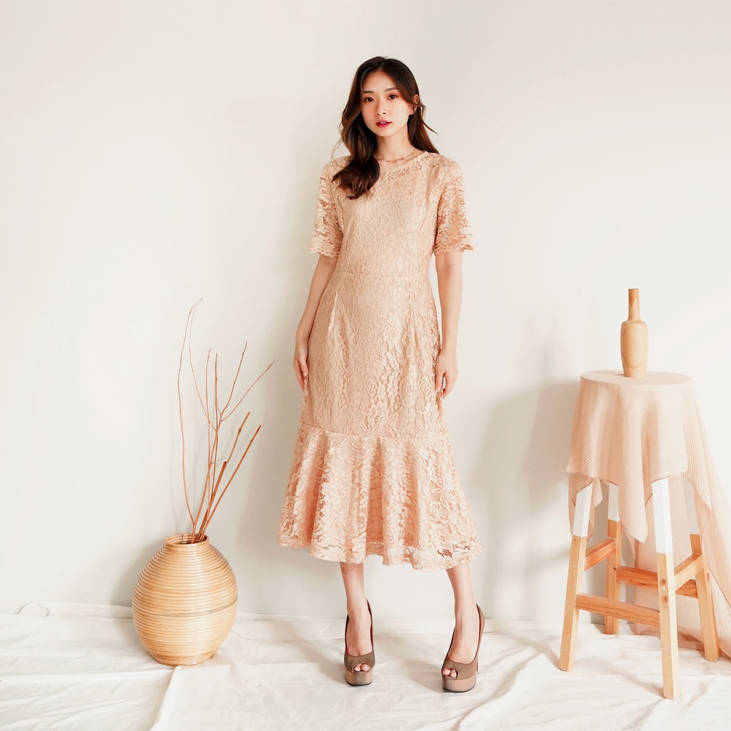 Midi Dress Pesta Kondangan / Dres Gereja Brukat Heyon Bridesmaid