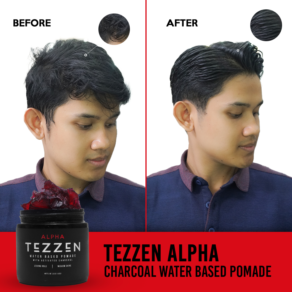 Tezzen Mini Alpha Charcoal Water Based Pomade - Premium Hair Pomade Rambut Keren Rambut Sehat