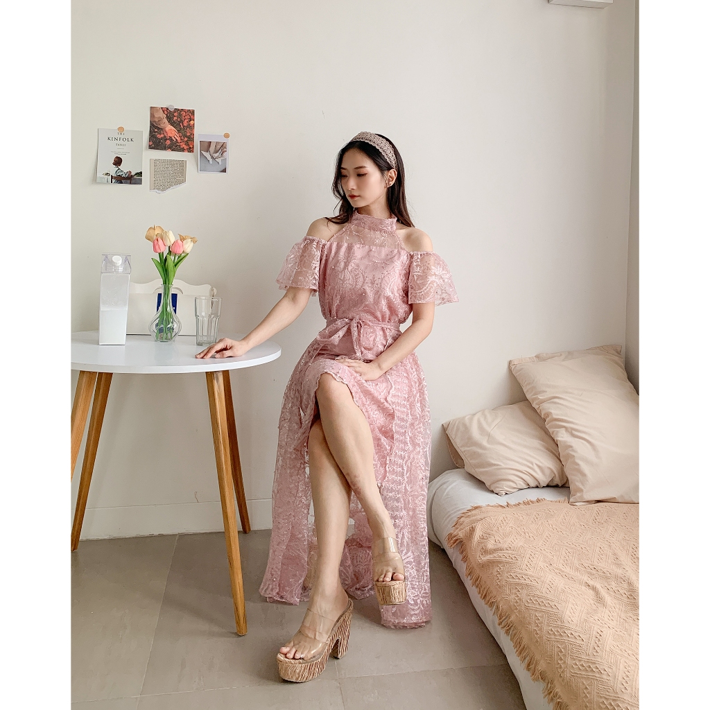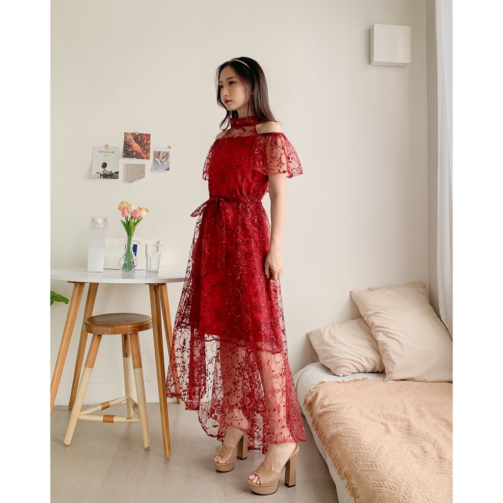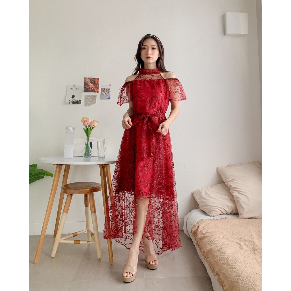 Dress Charity M L Xl Dress Pesta Kondangan Natal Brokat Tile Simple Elegan Mewah Gaun Formal Terbaru