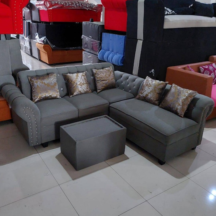 Sofa L Putus Kancing / Sofa L Minimalis / Sofa L Santai Bahan Beludru/ Sofa Letter L