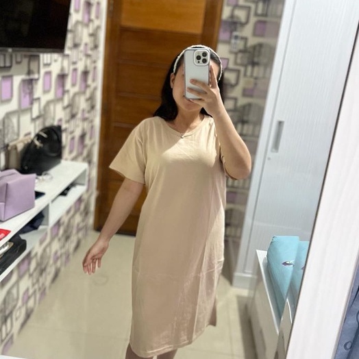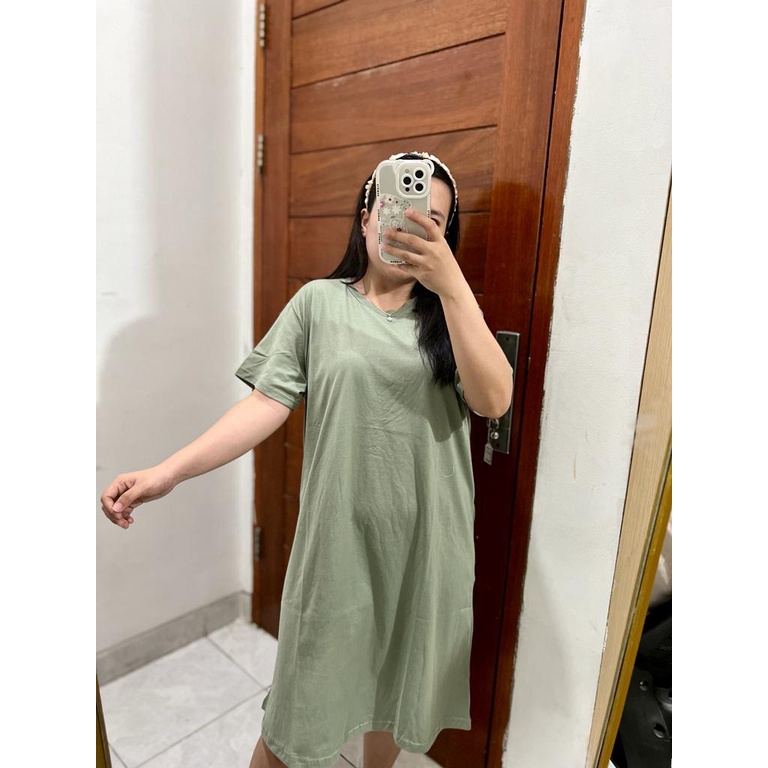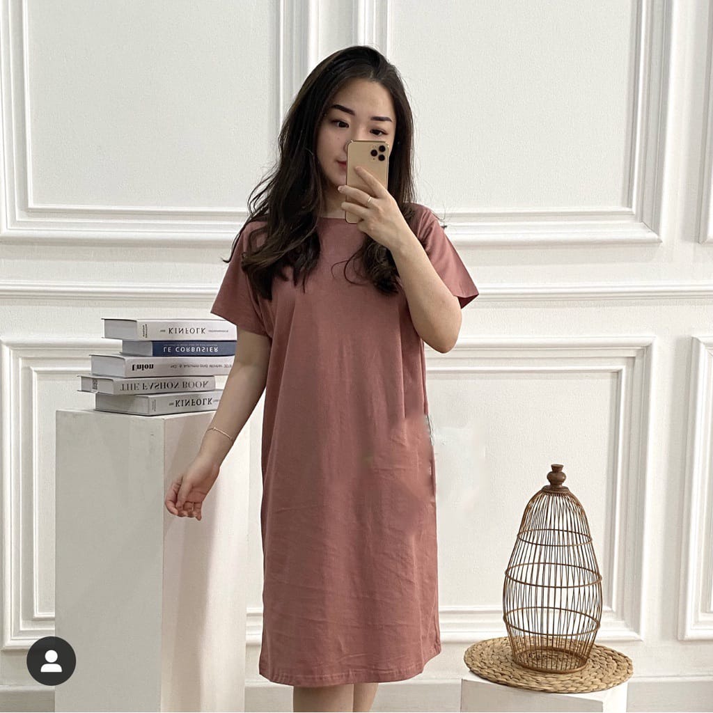 Dress Katun Polos Hitam / Beige / Sage Green / Dress Korea Style