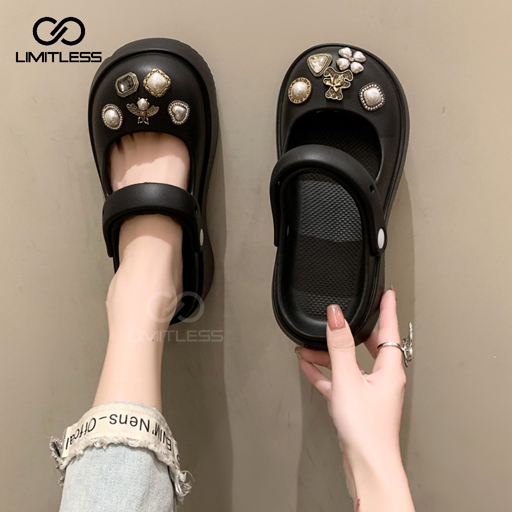 LIMITLESS [FREE PERMATA] Sandal Slop Wanita INARA Permata Sendal Gunung Cewek Terbaru - Size 31 - 40