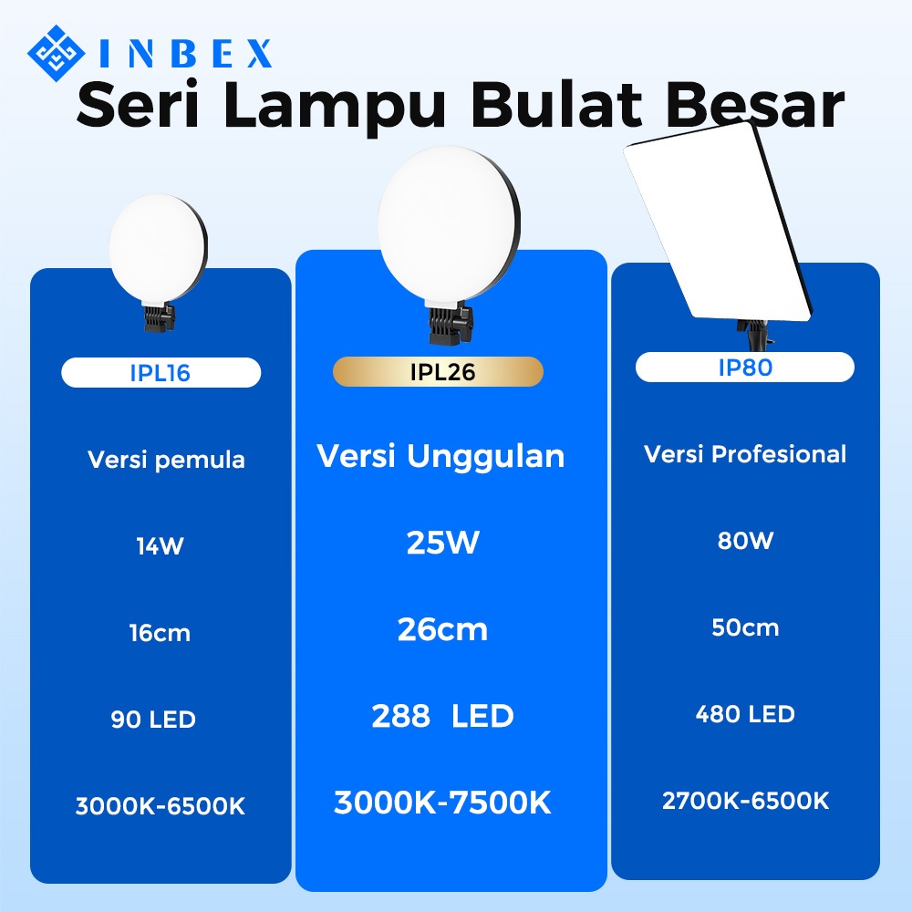 [Putar 360°] INBEX IPL16 Light Bisa diputar 360° Tripod konten kreator ring light 12Inci 8Inci Lampu 3 Warna Bulat Panel Besar Lampu Video streaming Studio