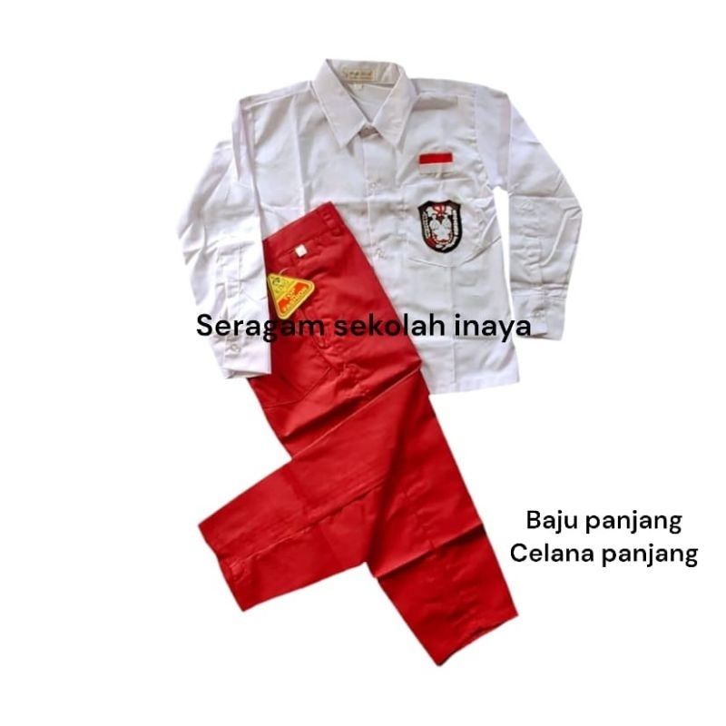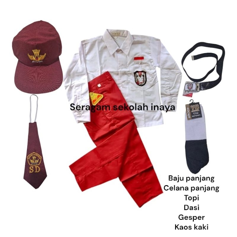 SERAGAM SD SETELAN SET LAKI LAKI BAJU PANJANG,CELANA PANJANG,TOPI,DASI,GESPER,DAN KAOS KAKI