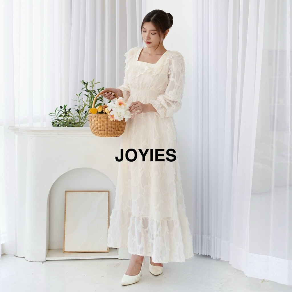 Yubi Dress Korean Vintage Lengan Panjang Hijab Square Neck Sweet Holiday Maxi Summer Spring Outdoor Ruffle Gaun Cantik M