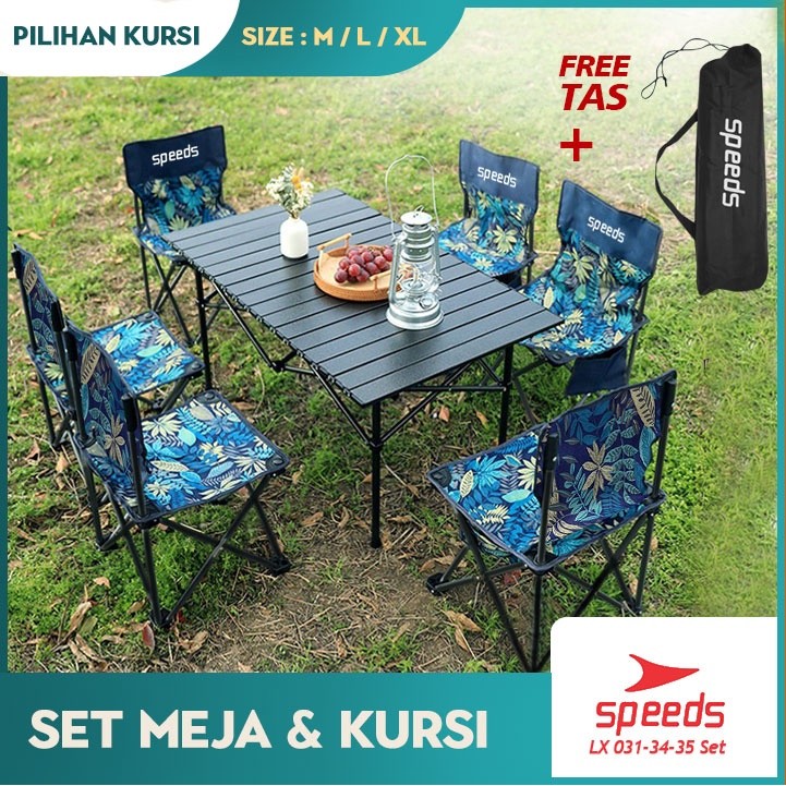 Speeds Set Kursi Lipat Folding Chair Fold Table Meja Camping Memancing Piknik Outdoor 031-35