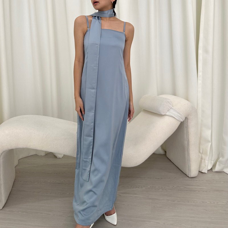 Plume Dress | Rooha | Dress Panjang Wanita Satin 2 Ways Maxi Dress Tube Dress Korean Party Dress