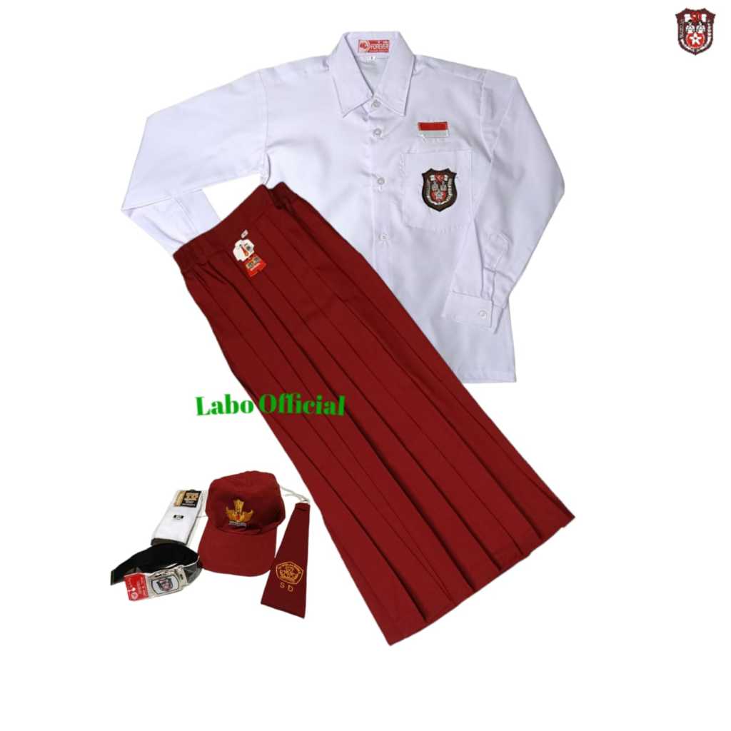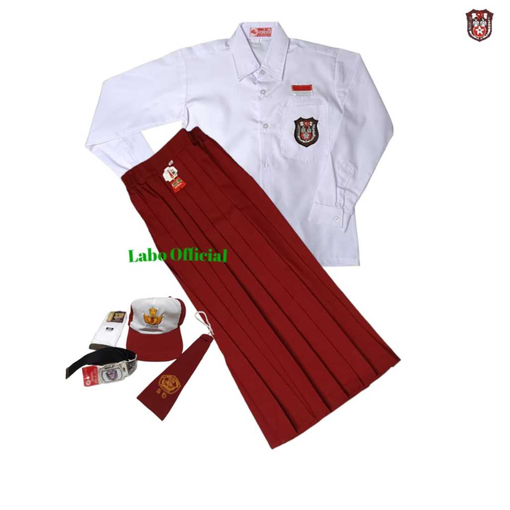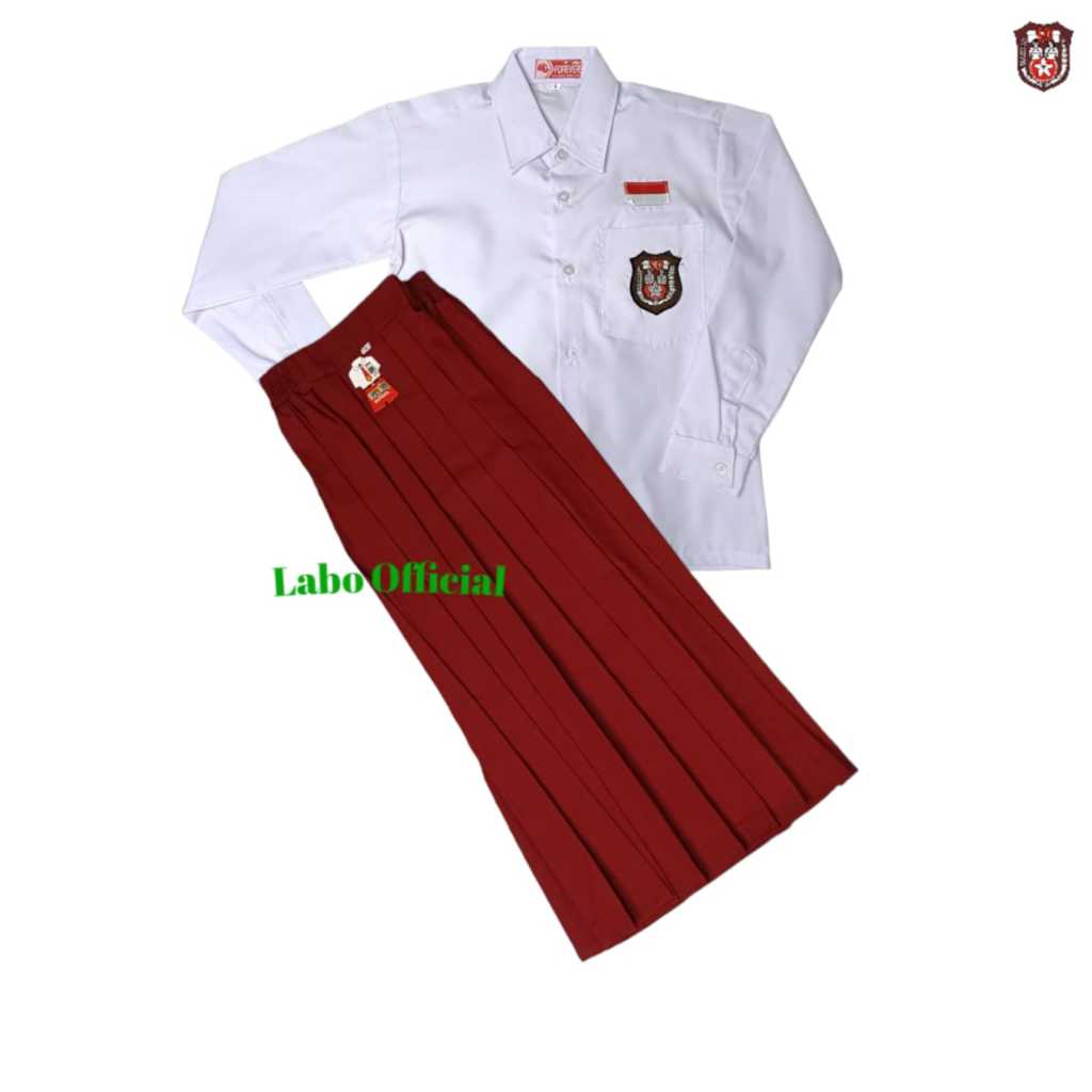 Seragam Sekolah SD Merah Putih Perempuan Lengan Panjang Rok Merah/Setelan Sekolah SD Merah Putih Perempuan Lengan Panjang Dan Rok Panjang Merah