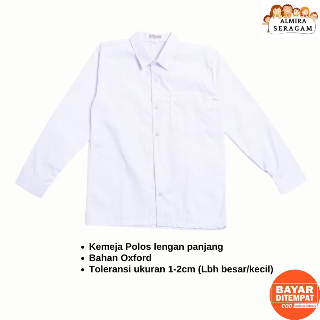 Kemeja Putih Lengan Panjang SD SMP SMA Baju Almira Seragam Sekolah SD SMP SMA Tebal Oxford Logo Bordir