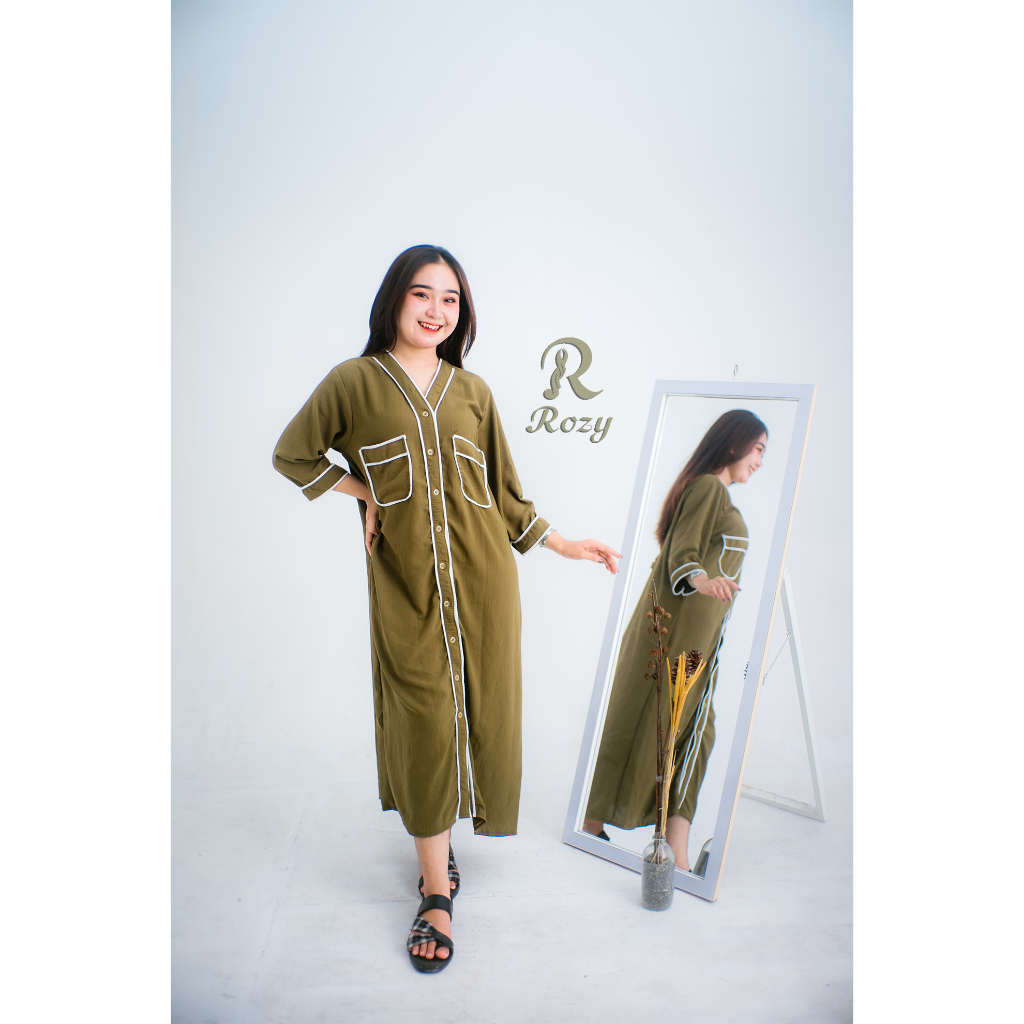 Dress Hellena Kekinian Cringkle Airflow 9 Kancing Aktip Dress Wanita Kekinian Busui