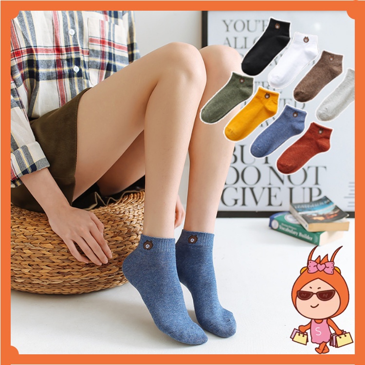 Reseller Welcome - K351 Kaos Kaki Ber Cokelat / Kaos Kaki Ankle Cute / Socks / Short Socks