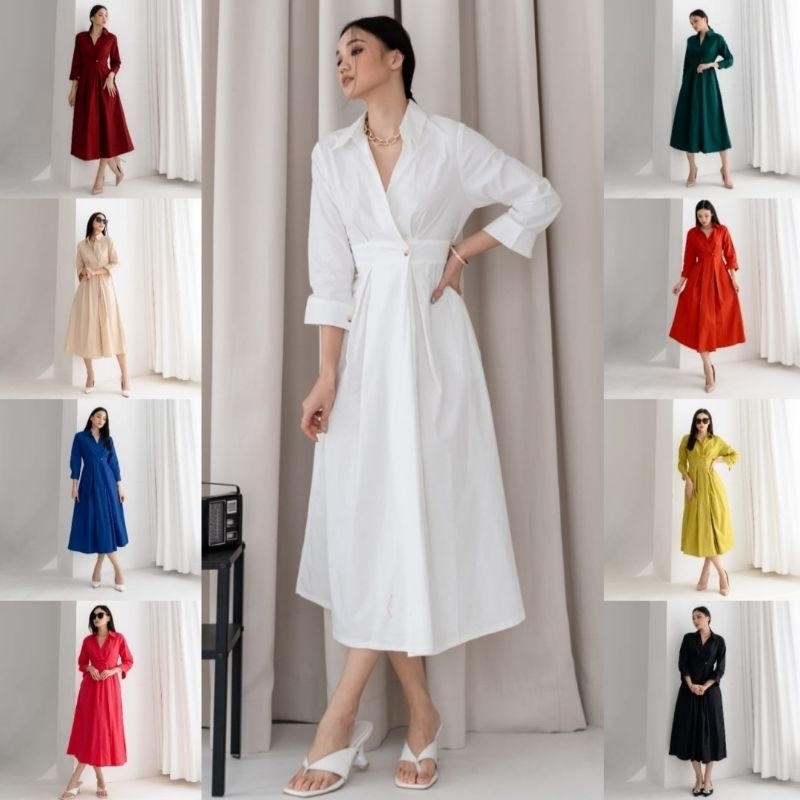 Sheliciousroom Premium Lokal 🇮🇩 Best Seller ☄️ Garcia Vintage Collar Button Plain Kimono Poplin Midi Dress ( Busui & Hij