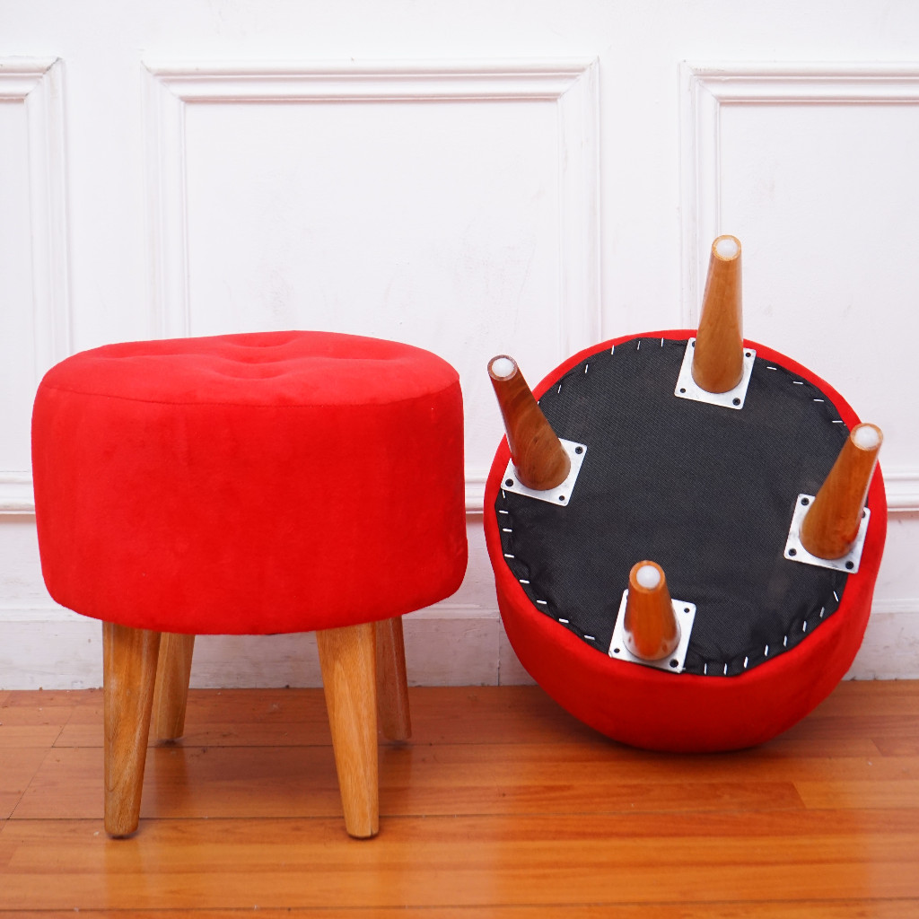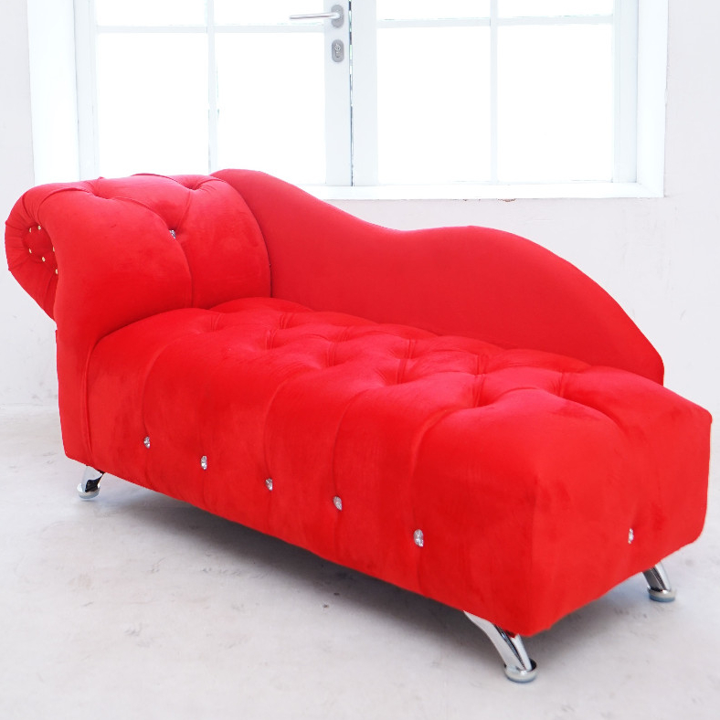 Set Sofa Chaise Lounge Merah + 2 Bangku Bulat – Sofa Mewah Beludru