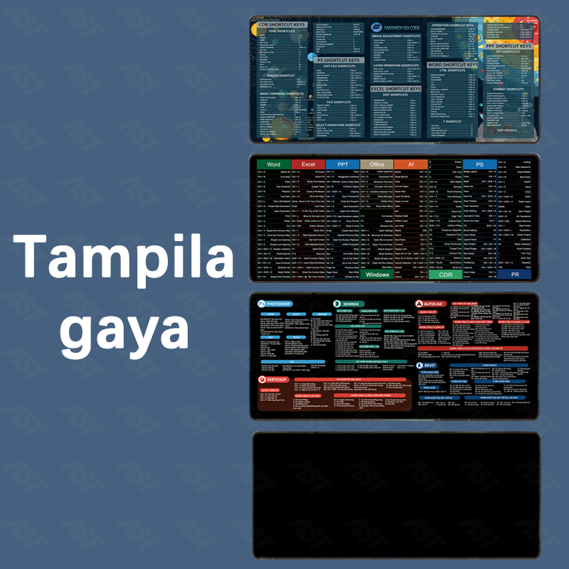 Alas Mouse Pad Office/Excel 80X30Cm (4 Desain) - Cetak Panduan Shortcut, Bahan Lembut & Tahan Lama