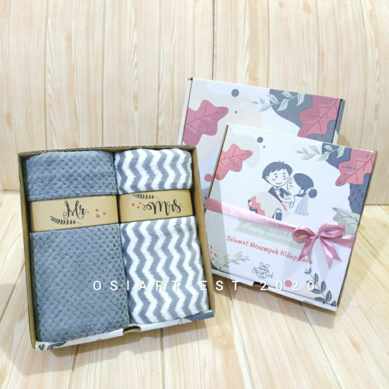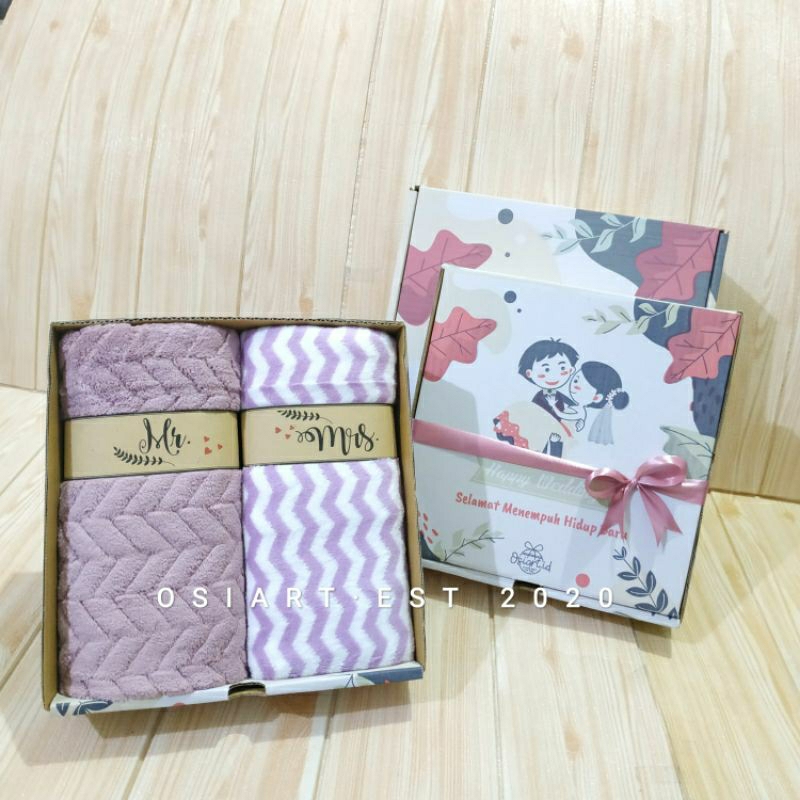 Hampers Pernikahan Handuk Couple Jumbo 70x140 Cm Kado Nikahan Gift Box Wedding Murah Paket Hemat Hadiah Nikah Ukuran Dewasa Bahan KatunEngagement Tunangan Anniversary Birthday