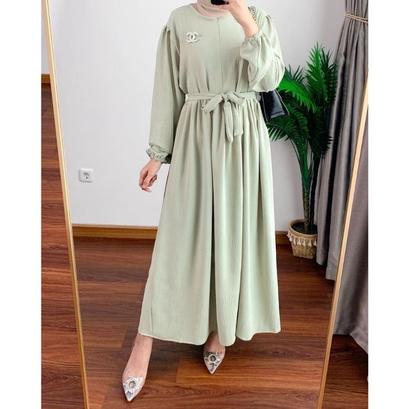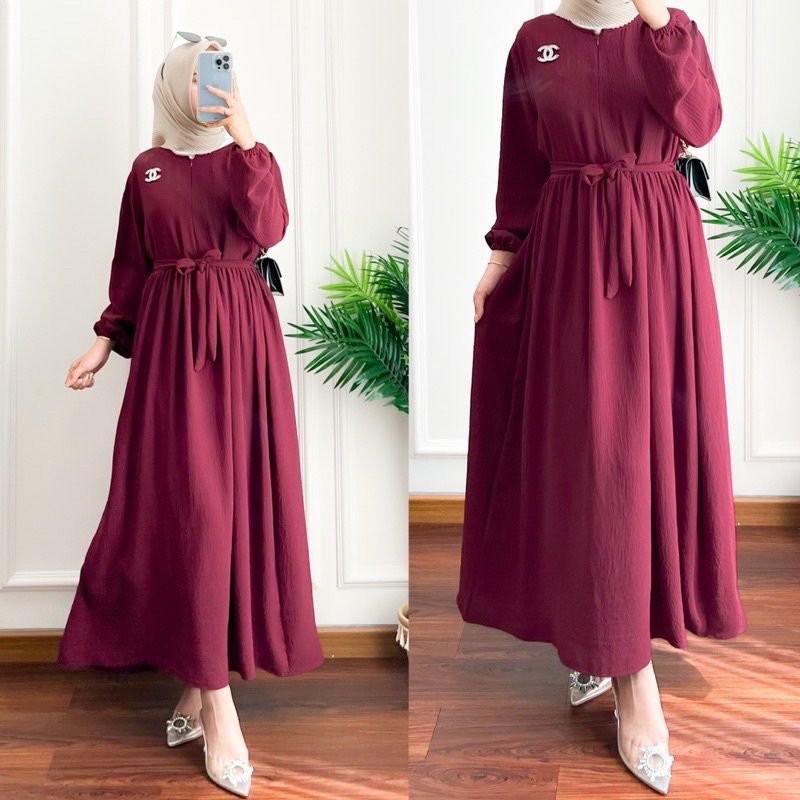 Bavina Midi Dress Cringkel/New Arrival Midi Dres Cringkel/Gamis Remaja/Midi Dress Kekinian/Midi Dress Viral/Midi Dress C