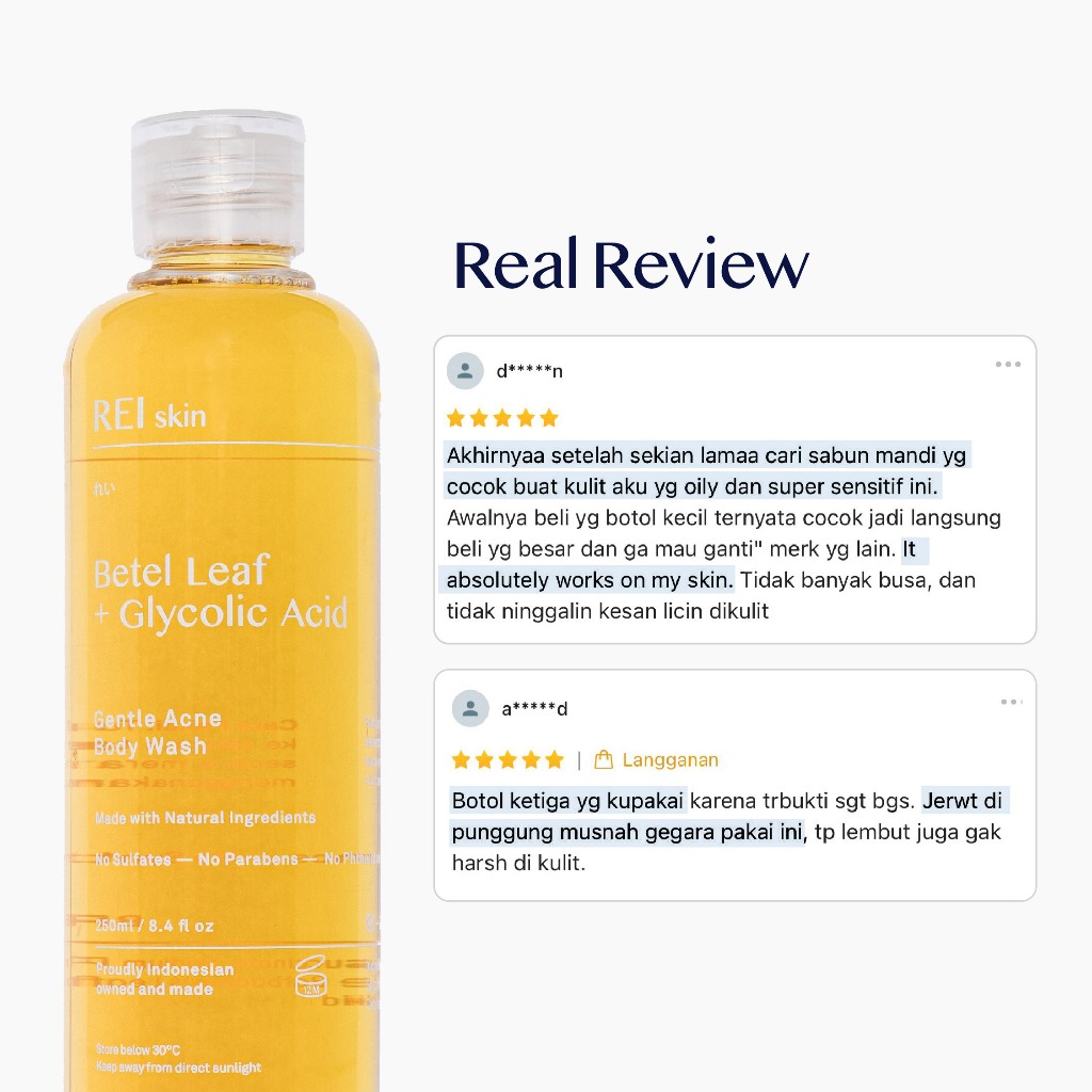 Rei Skin Betel Leaf + Glycolic Acid Gentle Acne Body Wash 250 Ml (Sabun Jerawat Badan)