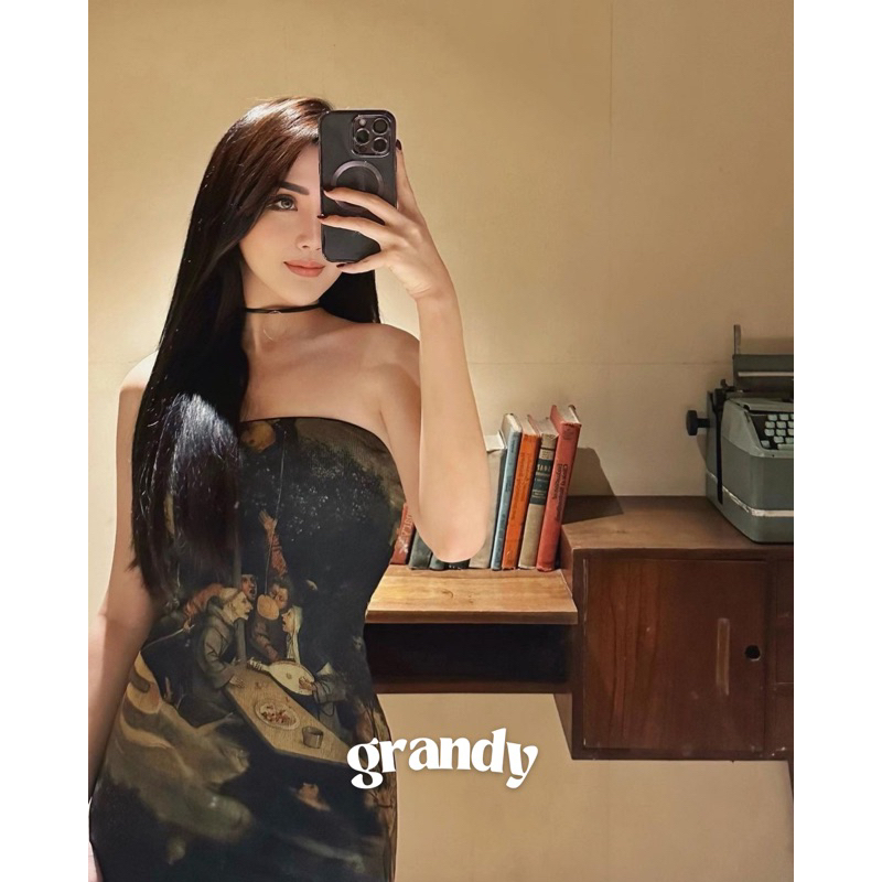 Grandy - Aratela Tulle Printed Mesh Dress / Party Tube Dress Wanita Tile Sheer