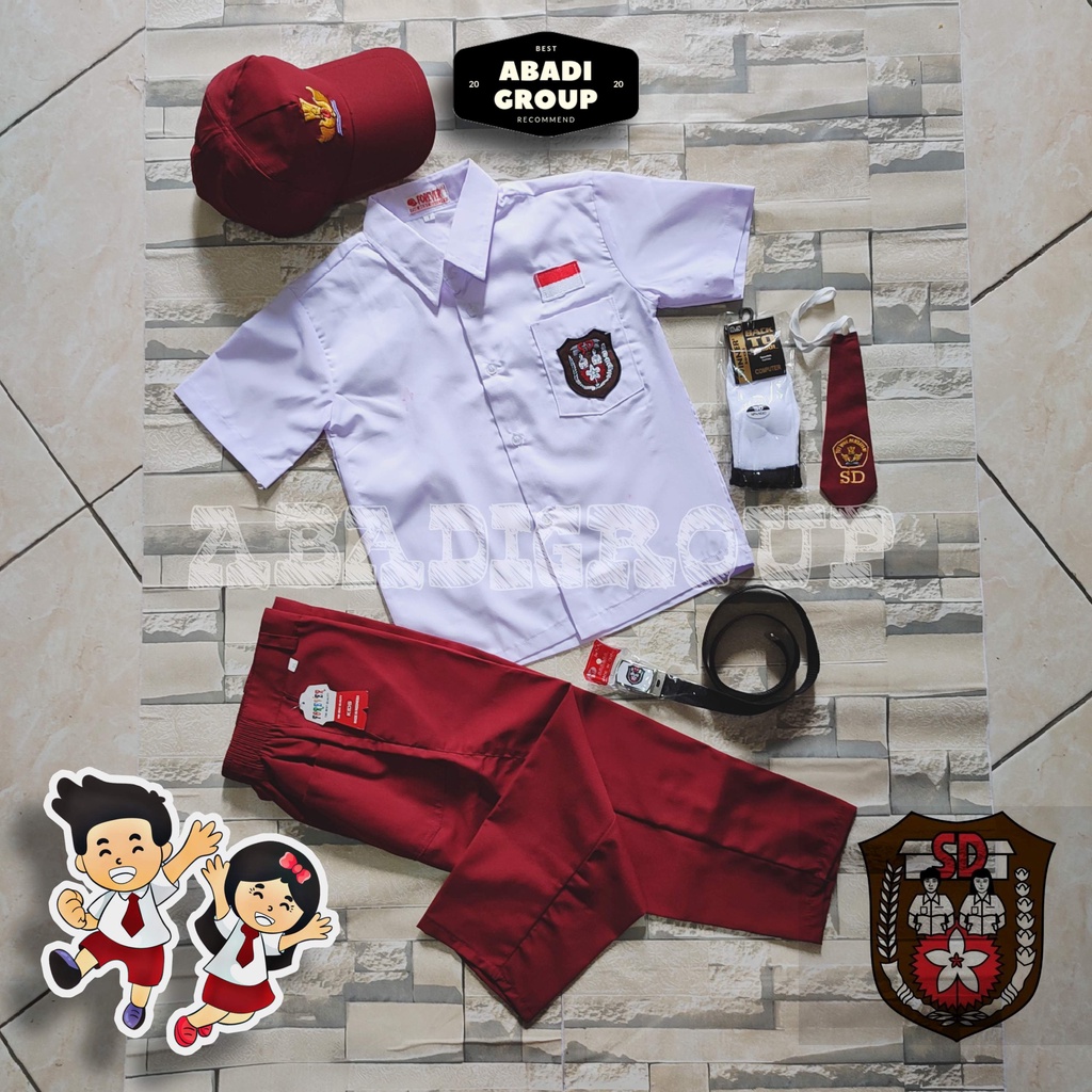 setelan seragam merah putih SD laki pendek panjang kelas 1-6 komplit