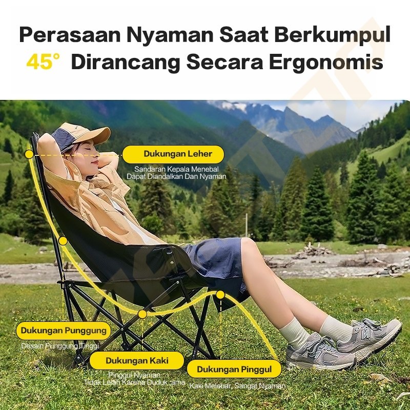 Trailtop Kursi Lipat Sandaran Tinggi Dengan Sandaran Kepala Busa Kursi Camping Beban 150Kg