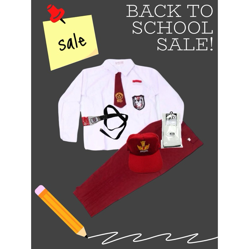 Setelan Super Lengkap Seragam Sekolah SD Laki BAJU PANJANG CELANA PANJANG