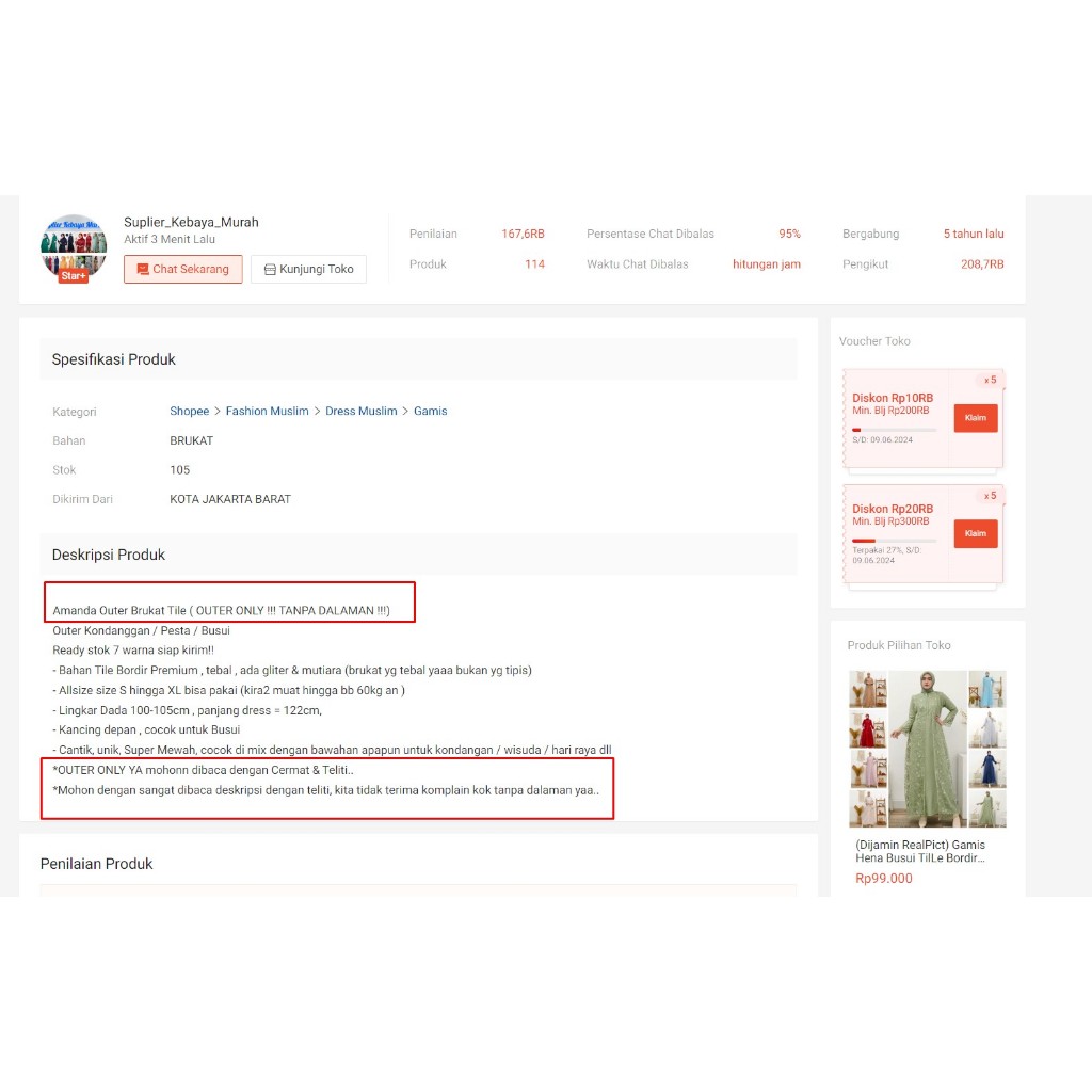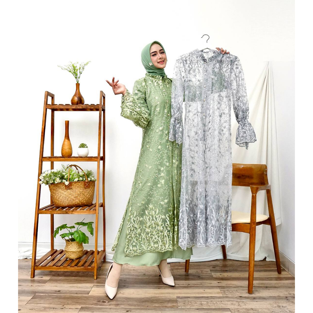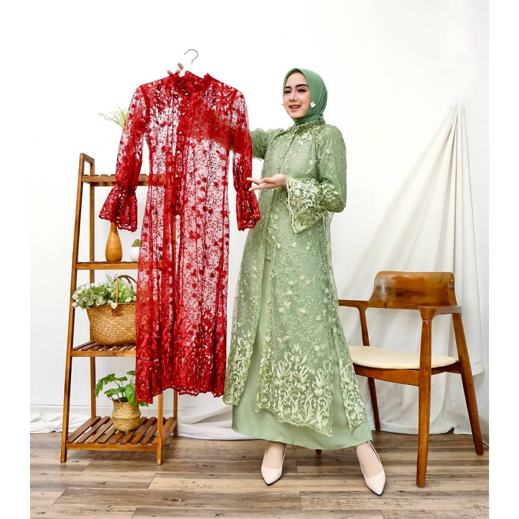 Outer Amanda Busui Brukat Tile Bordir / Lace Outer Dress / Outer Gamis Tille Brokat