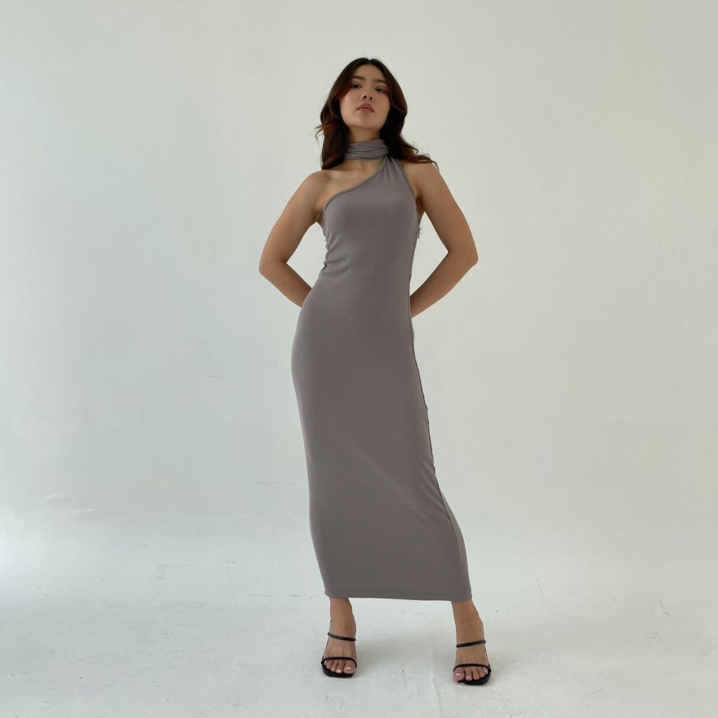 Saturday Dress | Dress Panjang Wanita Rib Knit Assymetric Terusan One Shoulder Korean Tank Aesthetic Long Dress Two Way