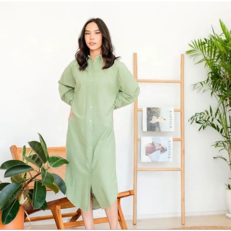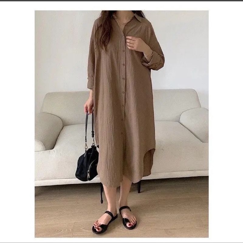 Oversize Dress-Shirt Dress-Long Outer Linen Cringkle-Midi Dress Oversize
