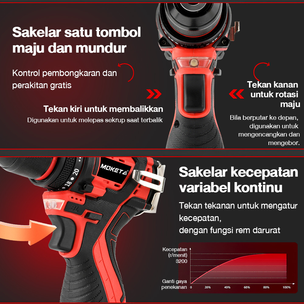 Moketa 48VF Brushless Cordless Drill 450W Mesin Bor Impact Hand impact drill Power Tools