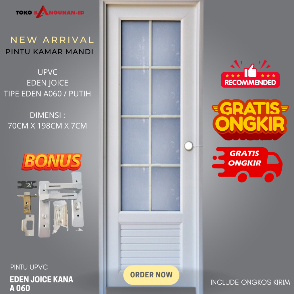 Pintu UPVC EDEN Joice Kaca Tipe A060 Putih Pintu Kamar Mandi