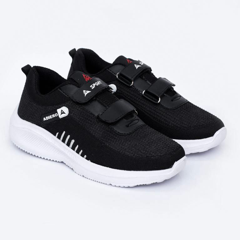 Adiero Sepatu Sekolah Anak Laki & Perempuan Sneakers Velcro Original Warna Hitam Putih size 28 - 40